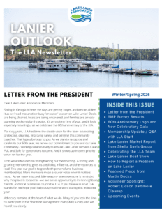 The Winter Edition of the Lanier Outlook features LLA's 2023 Year End Review, Shore Sweep Recap, New Leadership and Program Updates!